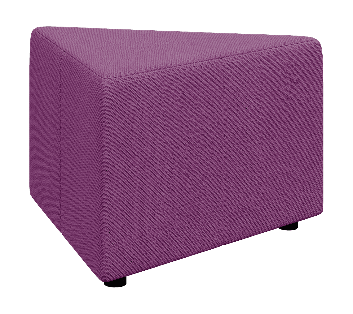 Треугольный пуф ОРИГАМИ может использоваться, как самостоятельный элемент. Также его используют для формирования прямого угла в композиции. Для его производства используется поролон повышенной упругости, что гарантирует привлекательность внешнего вида длительное время. Низкие опоры обеспечивают отличную устойчивость модуля. Поэтому модули отлично подходят для оформления детских центров, холлов театров, торговых центров, лаунж-зон.
