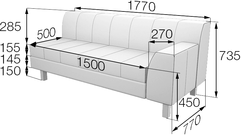 Трехместный модуль ФЛАГМАН с левым подлокотником может быть основным или замыкающим элементом в мебельной конфигурации. Для обычного углового дивана модуль будет основным. В сложной конфигурации модуль может выступать в качестве увеличенного замыкающего элемента. С его помощью можно наиболее рационально меблировать интерьер и организовать максимум комфортных посадочных мест.
