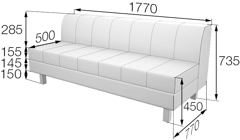 Преимуществом модуля является отсутствие подлокотников. По сравнению с диваном из этой же коллекции у модуля посадочное место намного просторнее. При этом он занимает на 25см меньше места, чем диван. Использование модуля позволяет существенно сэкономить пространство и создать необходимый уровень комфорта.