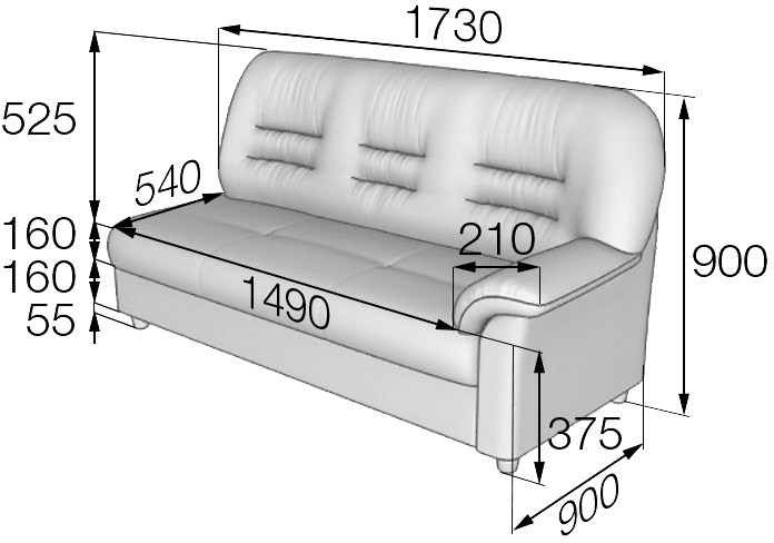 Размер (мм): 1730х900х900