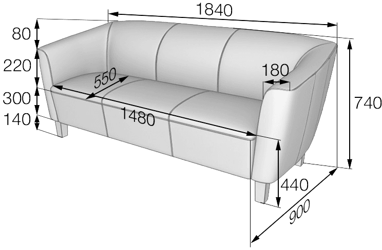 Размер (мм): 1840х900х740