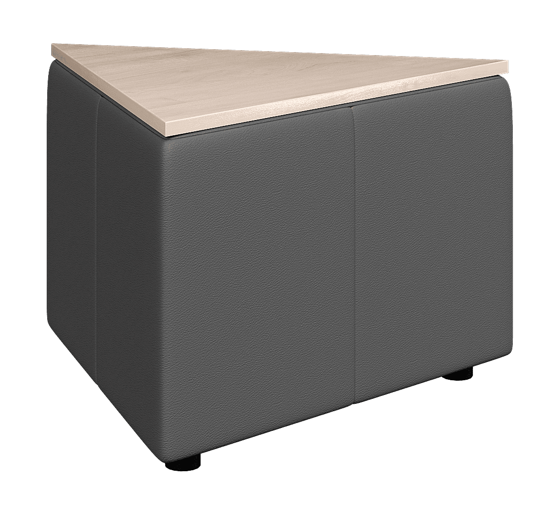 Возможностей размещения треугольного столика ОРИГАМИ достаточно много. Он может использоваться, как самостоятельный элемент или встраиваться в композицию. Из них можно собирать составные столики или использовать для формирования прямых углов в композиции.