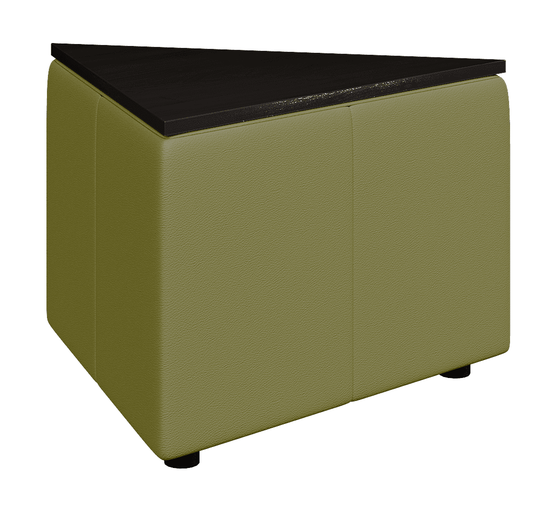 Возможностей размещения треугольного столика ОРИГАМИ достаточно много. Он может использоваться, как самостоятельный элемент или встраиваться в композицию. Из них можно собирать составные столики или использовать для формирования прямых углов в композиции.